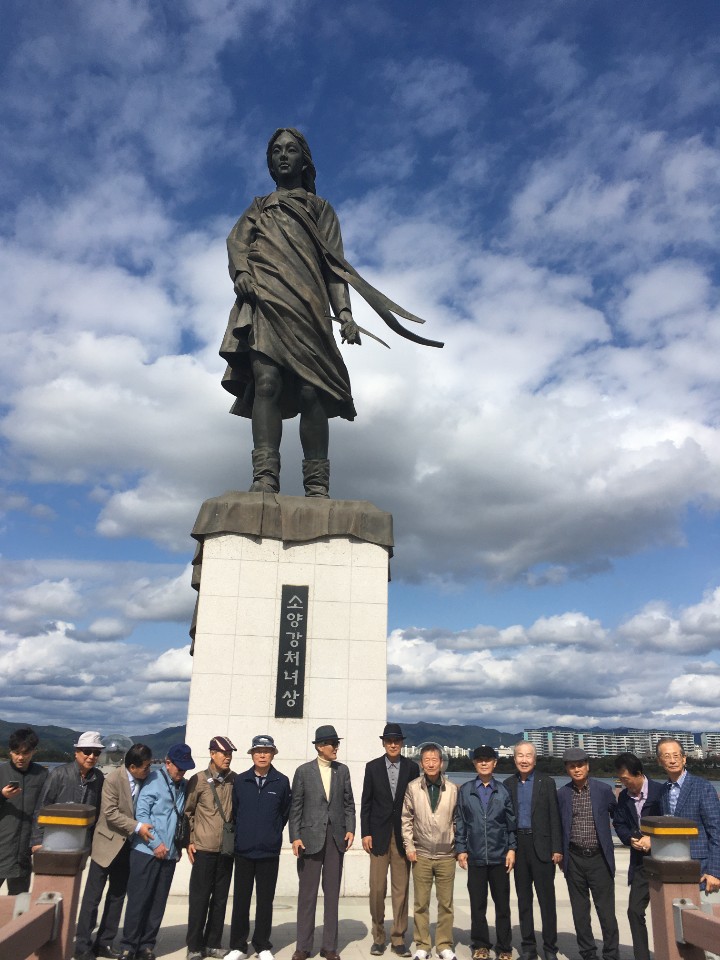 함께 일원상 전에 참배하고 교당 현황을 듣고 건물을 돌아보았습니다. 춘천교당은 그 사이 출석교도 40명에서 80명으로 성장했고 연말에는 백 명쯤을 바라본다고 합니다. 이내 식당으로 옮겨가 점심을 맛있게 먹은 다음 가까운 의암호반에서 <소양강 처녀상>을 배경으로 기념사진을 찍는데 활짝 갠 하늘에 피어난 뭉게구름이 멋진 배경을 이루었습니다.