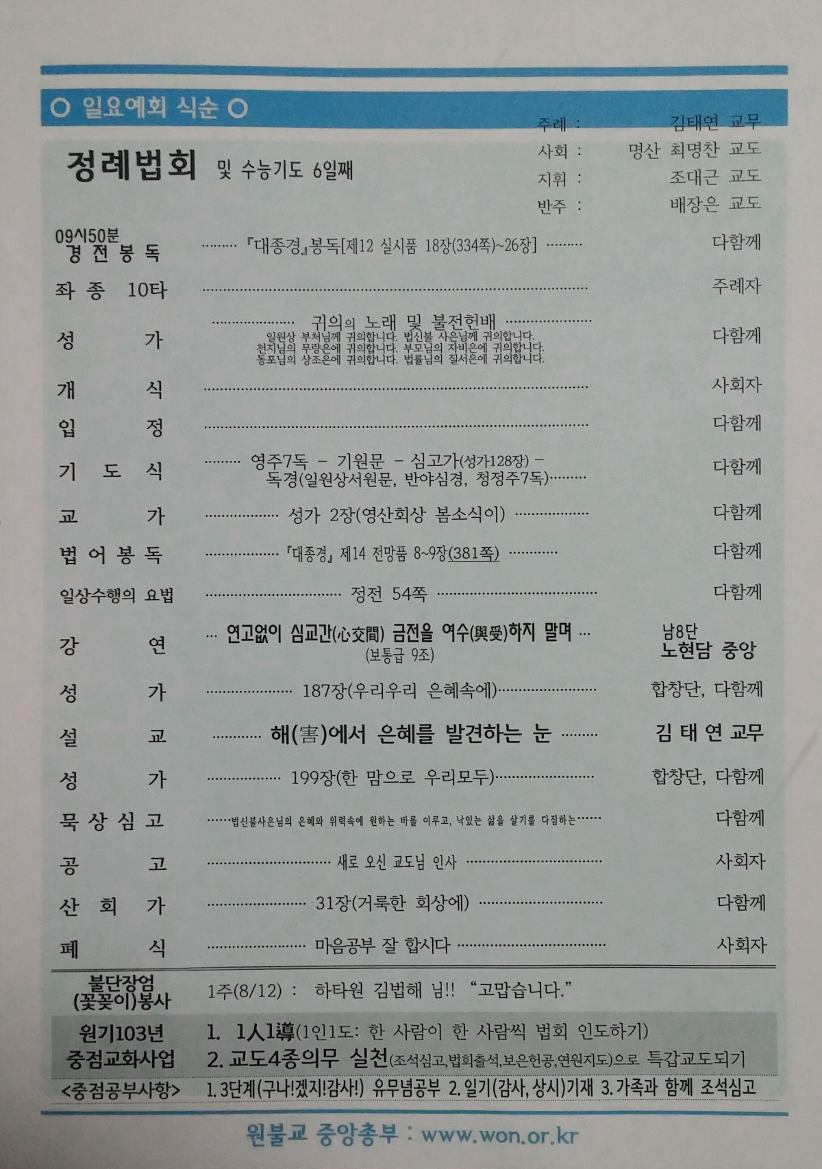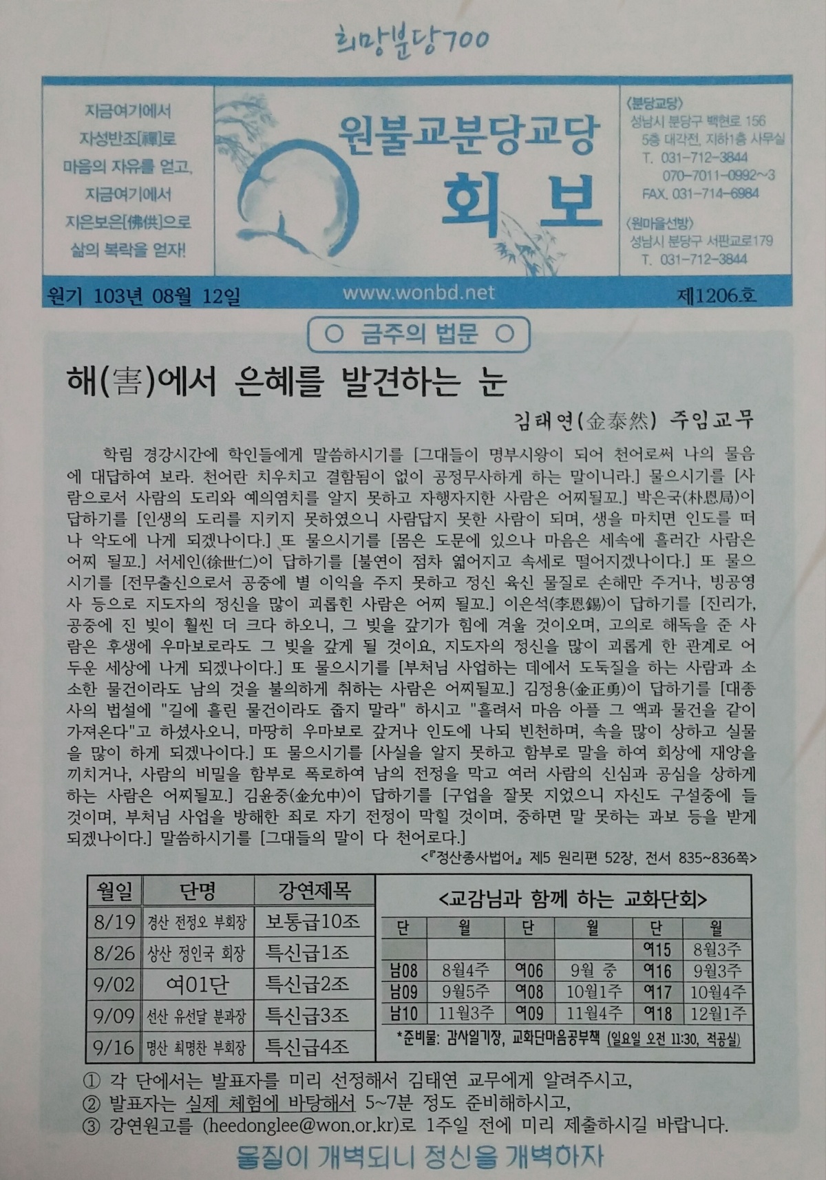 HOME > 교당회보/행사사진 > 교당회보