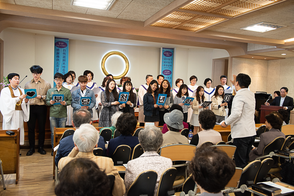 원기 103년 4월 29일 청년교도주관 법회 사진입니다.