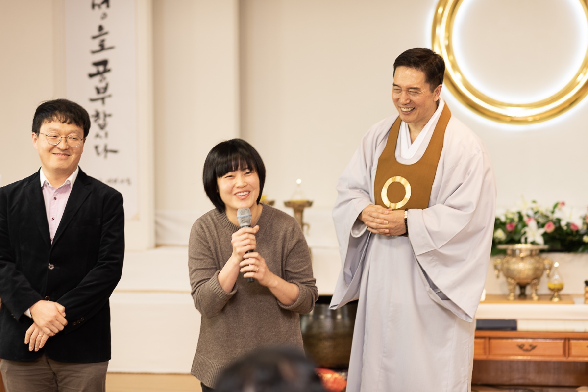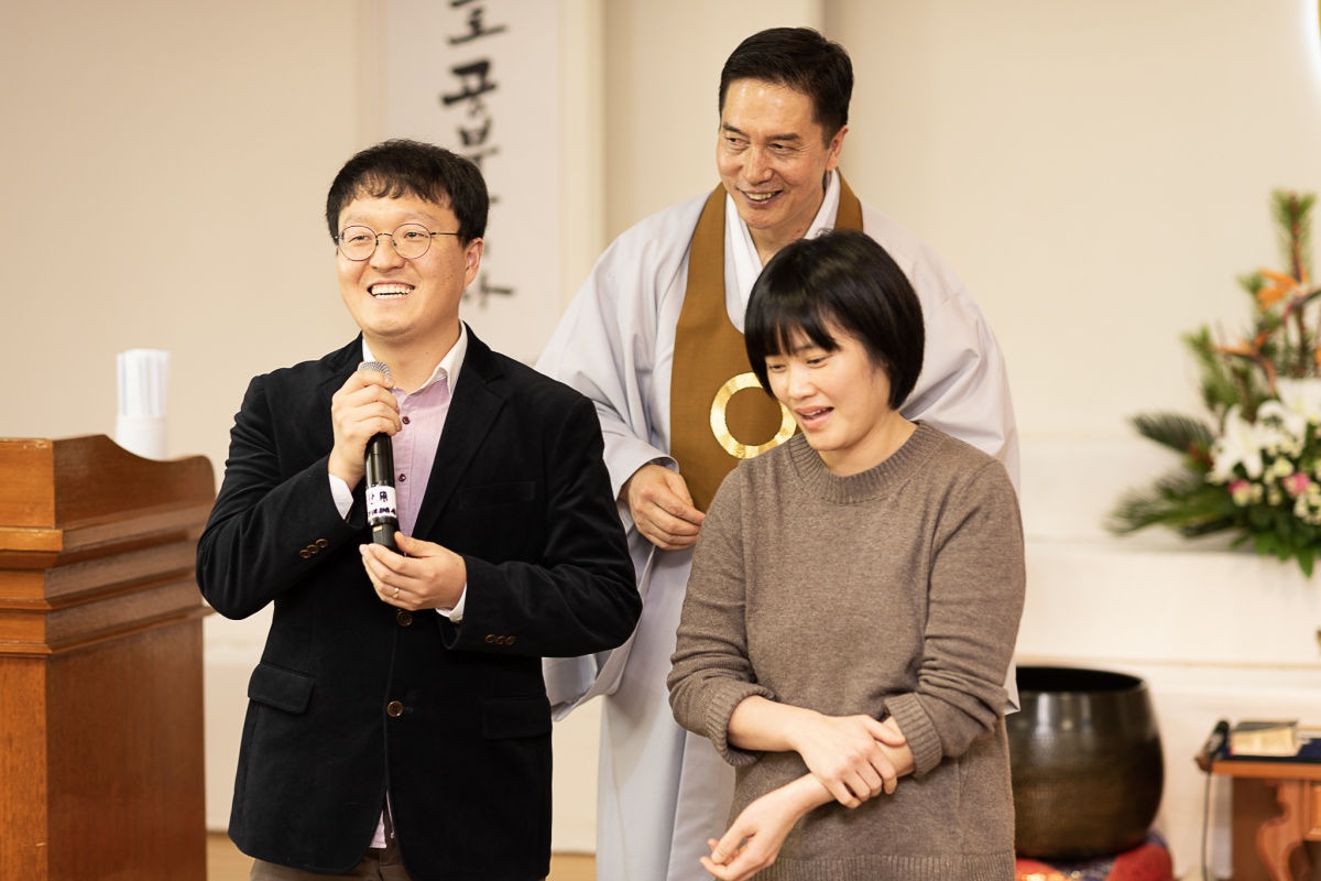 방학교당에서 분당교당으로 오신 김 성원님, 이 성경님 환영합니다. 김 성원님은 군에서 원불교를 처음 접하고 입교하신 교도입니다. 오늘 아들, 딸 (김 창현, 김해경)과 같이 일원가족으로 오셨습니다. 판교에서 근무하시고 집은 의왕시 라고 합니다. 새로운 원기 105년 젊고 신심많은 새로운 일원가족의 분당 교당 전입을 환영합니다.