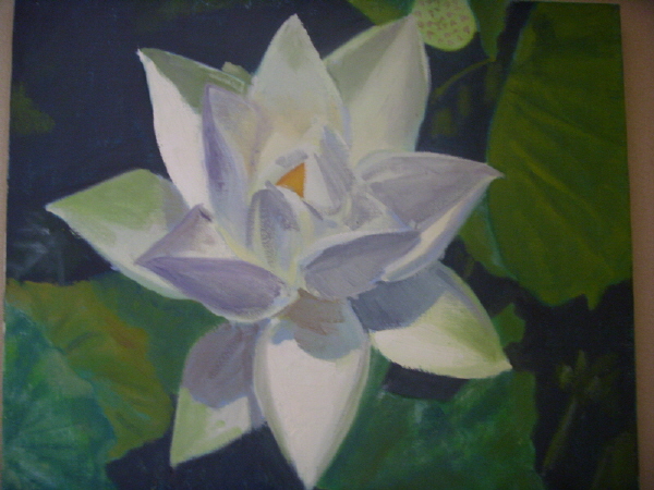 이제 4개월 된 초년병이 그린 것, 그저 귀엽게 봐주시길...... 위 그림은 꽃이 덜 핀 상태이고 아랫것은 좀더 피어오른 모습입니다. 현재로는 명암과 원근을 표현하는 수준이고 연꽃의 청초함과 부드러움을 나타내지 못하는 거 같아요.