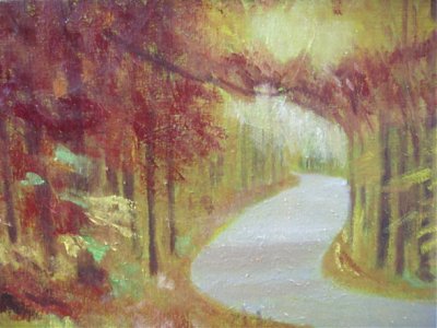 전타원의 가을풍경. 아직 완성되지도 않은 유화를 성 급한 사람이 올려보았습니다. 길은 유혹의 손길 같습니다. 저너머 미지의 세계를 탐하는 마음 때문일까요? 함께 걸어보고 싶네요.
