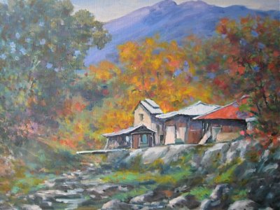 양지바른 언덕에 작으만한 시골집 툇마루에는 할머니 할아버지가 앉아서 멀리 도시로 떠난 아들 딸, 손주, 그리워 먼산 바라보고 계시는듯하다.