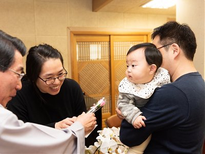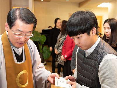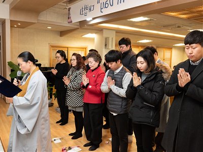 원기 103년 12월 2일 새로 입교하신 교도님을 위한 득도식이 대각전에서 거행 되었습니다.