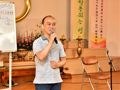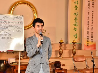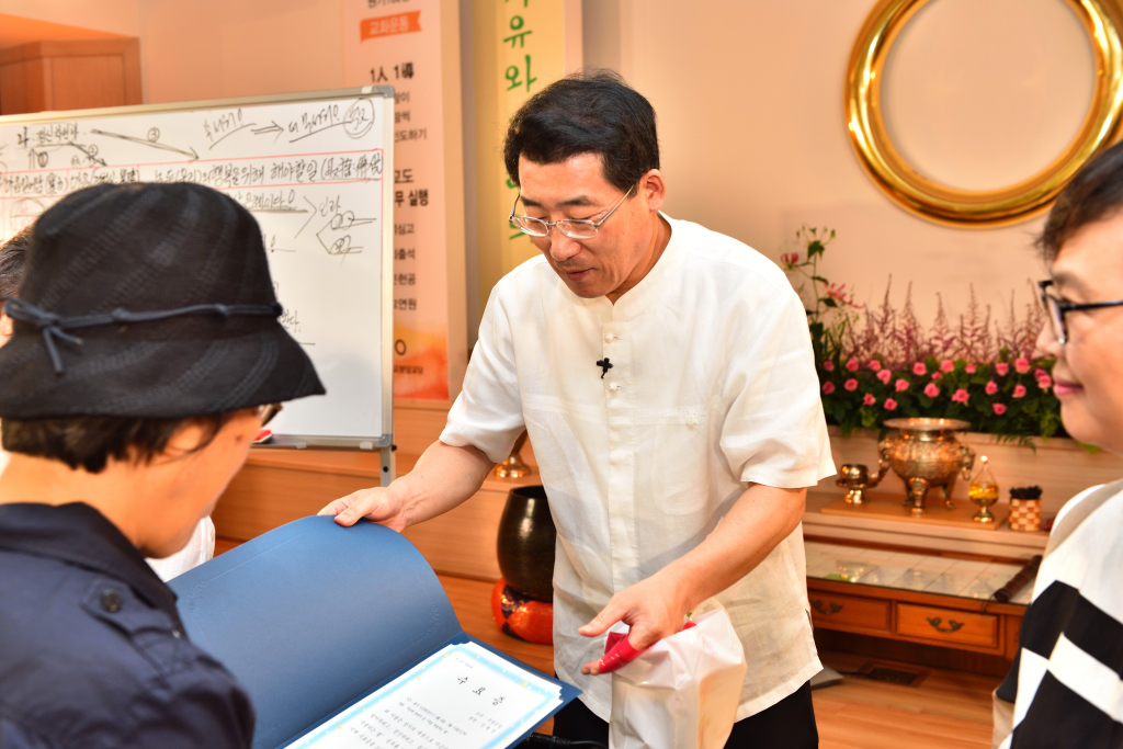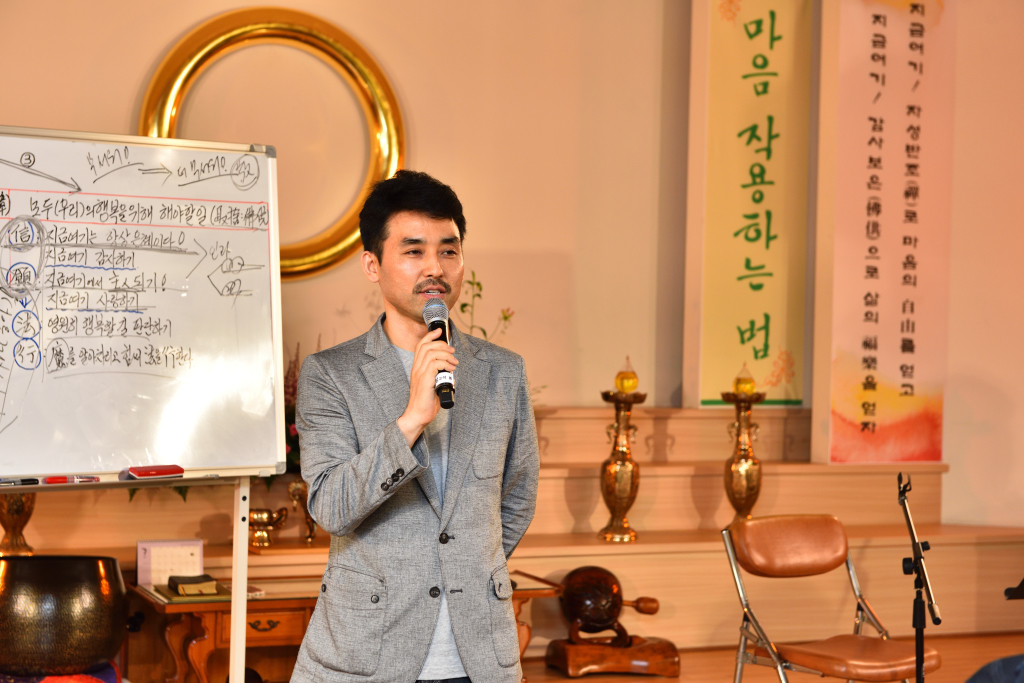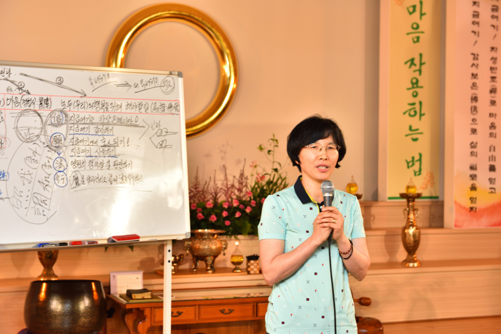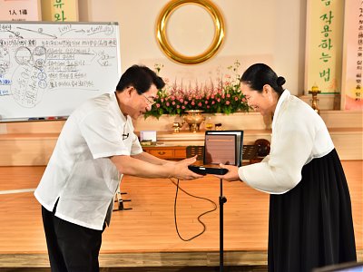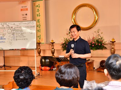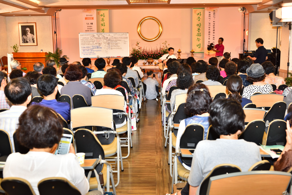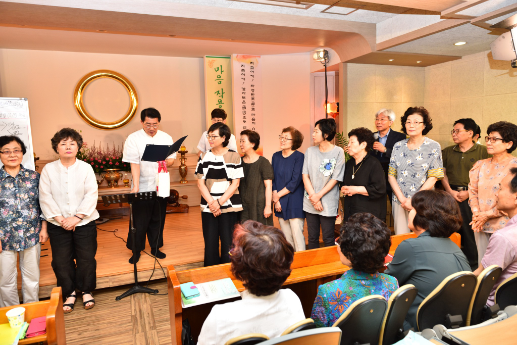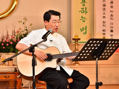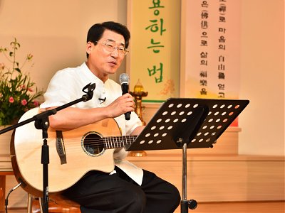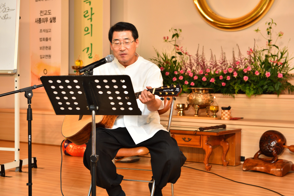 원기 102년 4월부터 4개월간 원음방송 TV의 구전심수를 마치면서 혁산 양원석 교감님과 같이 했던 분당교당 교도님의 수료식 사진 및 교감님 기타 연주 와 교도님들의 감상담 사진입니다.