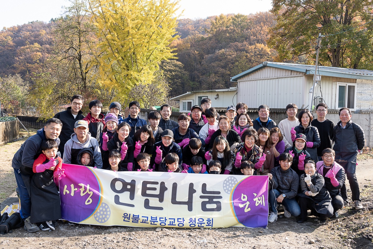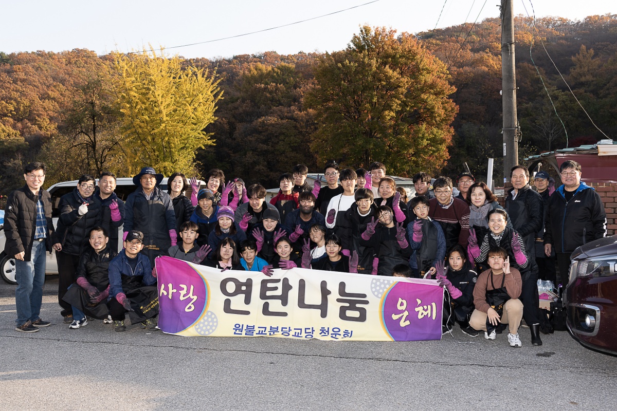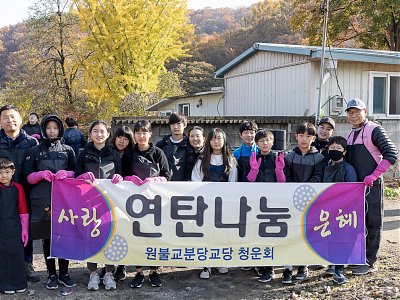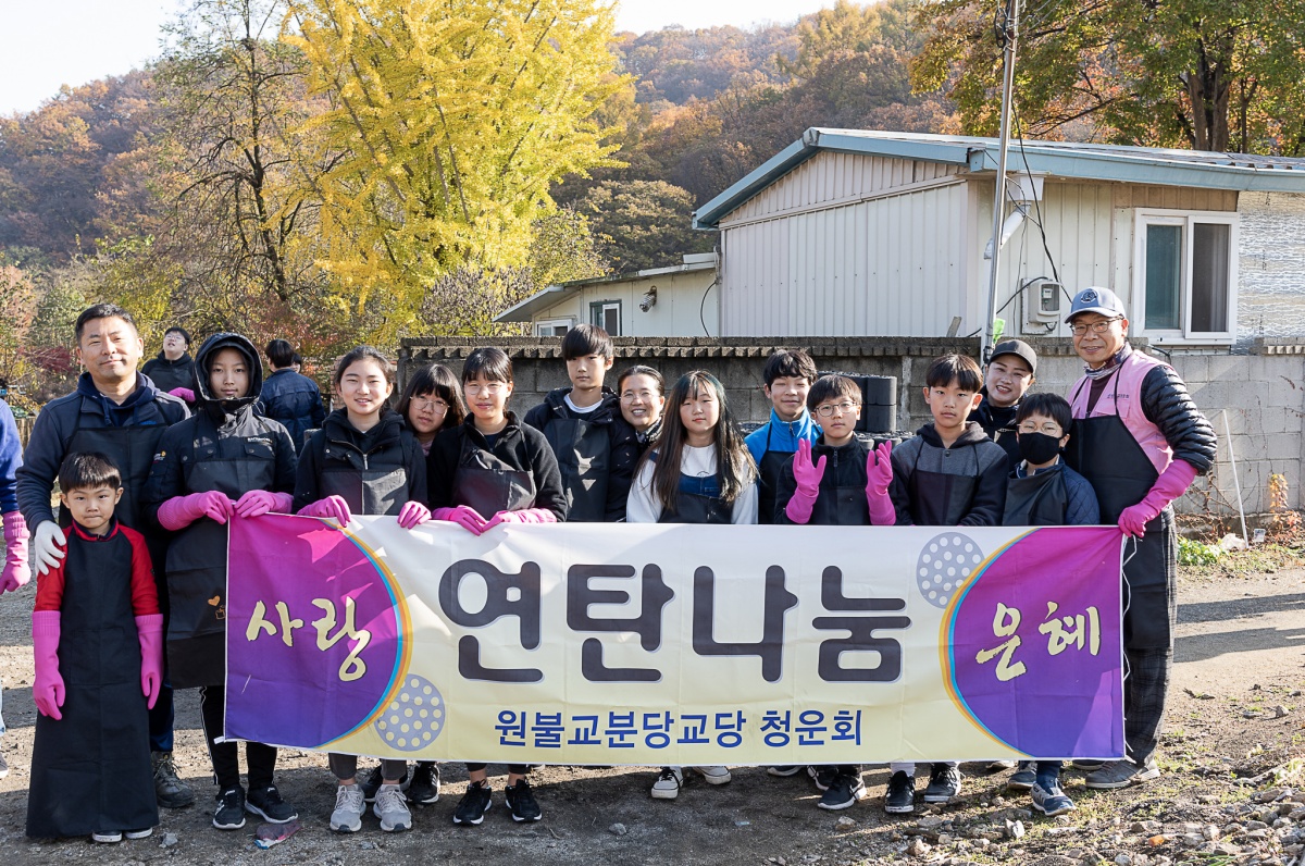 청운회 주관 사랑의 연탄 나눔 행사가 지난 원기 104년 11월 16일 교도님들, 하얀마을 복지관 직원분들 그리고 분당교당 자녀와 인연이 있는 학생들의 자원 봉사를 통하여 원만히 사랑의 연탄 나눔의 봉사를 마칠 수 있었습니다.