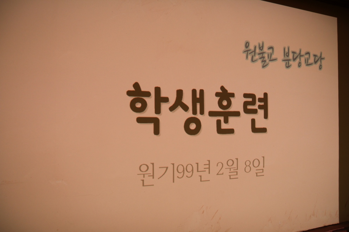 "Exelsior 조금 더 높이"라는 주제로 원불교 분당교당 학생회에서 겨울 정기훈련을 진행했다. 오덕훈련원에서 2월 8일, 9일 양일간 진행된 이번 훈련은 18명의 중·고등학생들이 참석하여 뜨거운 관심과 열의를 과시했다.