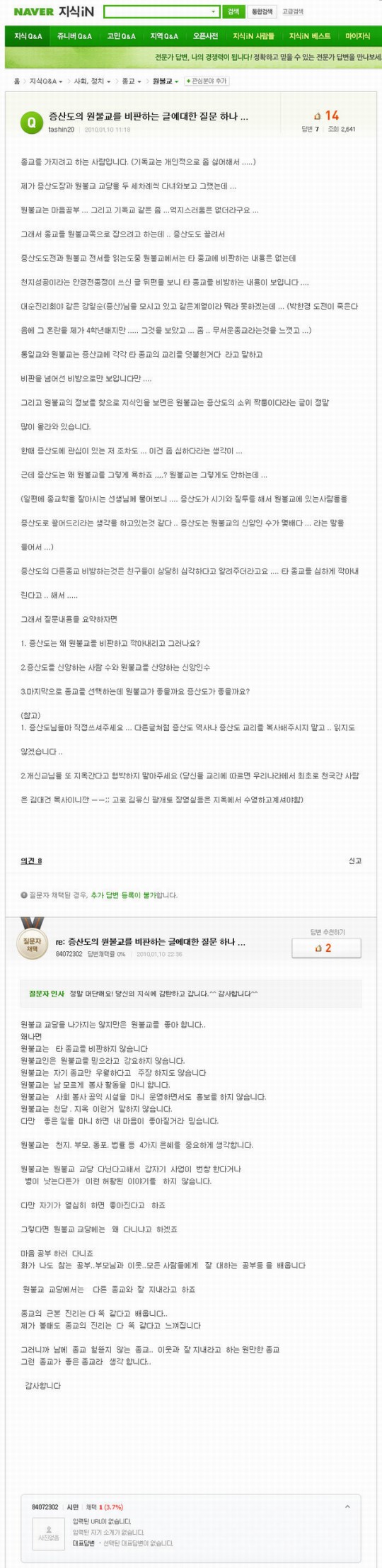 감사하게 잘 읽었습니다. 종교에 관심가진 한 분으로 인해 2천명이 넘는 사람이 원불교를 좀 더 잘 알았다는 생각입니다. 우리도 좀 더 적극적으로 내가 원불교 교도임을 보일때라고 생각합니다.