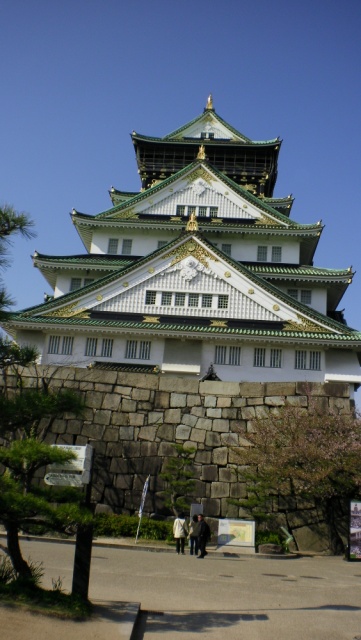 이어 오사카로 가서 오사카성을 들렀다. 400여년 전 임진왜란을 일으켰던 토요토미(豊臣秀吉)의 본거지였던 곳으로 규모가 상당히 컸다. 둘레의 2중 해자(垓字)를 지나 토요토미가 거처했던 8층의 천수각(天守閣)을 밖에서 둘러보기만 하고 내부 박물관은 시간관계로 구경하지 못했다. 배가 고파서 500엔 짜리 삶은 옥수수로를 사먹었다. 벚꽃은 다 지고 겹벚꽃만 피어 있었다.