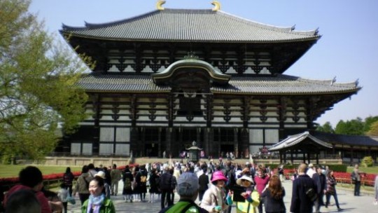 절 입구에는 붐비는 사람들 사이로 숱한 사슴들이 과자를 얻어먹으러 어슬렁거렸다. ‘대화엄사(大華嚴寺)’란 현판이 걸린 높은 남대문을 들어서니 양쪽에 큼직한 목조 인왕상이 눈을 부라리고 섰다. 담장 속 대불전(大佛殿, 높이 49.5m)에는 8세기 중반 주조된 대불(大佛, , 높이 15.7m)이 정좌했다. 이 절의 건립에는 백제 도래인의 후손이 참여했다고 한다. 대불전과 대불은 국보이다.