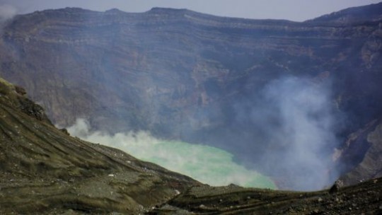 조식 후 활화산인 아소산(阿蘇山)으로 향했다. 큐슈섬 중심에 있는 아소산은 동서 18km, 남북 24km의 세계 최대급 칼데라 중에 아소오악(阿蘇五岳)이 있는데 그 중 연기를 내뿜는 나카다케(中岳, 높이 1506m)가 오늘의 목표이다.