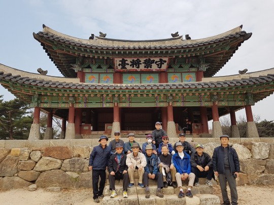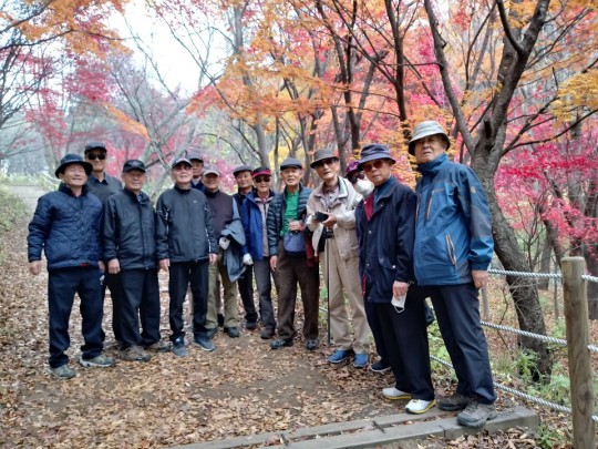 11시 지하철 <산성역>에 모여 함께 <52번 버스>를 타고 남한산성 중앙로타리에 있는 정류장까지 간 다음 거기서 단풍이 곱게 물든 숲속 언덕길 따라 약 30분 걸어서 수어장대(守禦將臺)까지 올라갔습니다. 그때 연장자인 85세 궁산님을 비롯한 2단 8학년들은 7학년들에게 전혀 뒤쳐지지 않았습니다.
