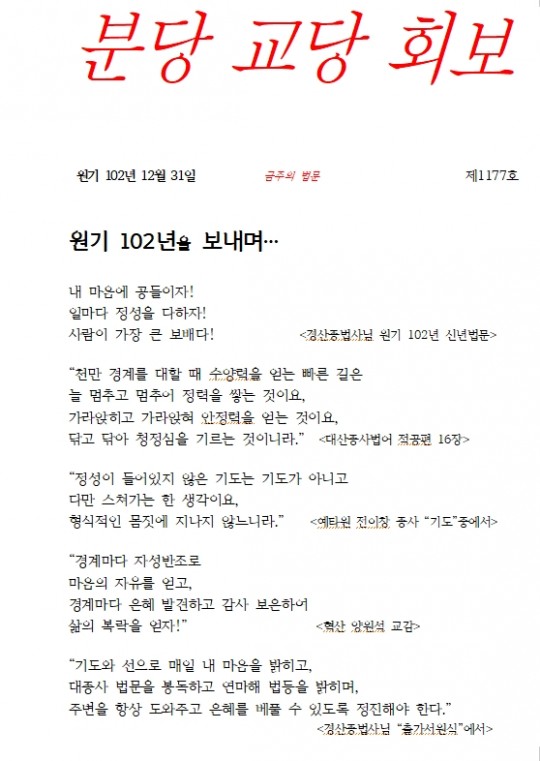 원기 102년 12월 31일 제 1177호 (송년법회)