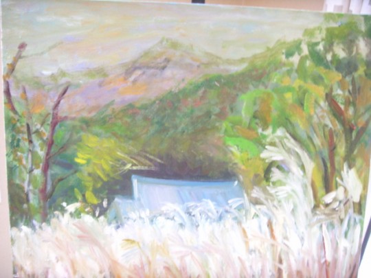 이 그림은 전번 문학기행 시에 제법성지에 가서 찍은 사진을 전타원이 유화로 그린 것입니다. 외조 잘 하고 있는 거죠? 아니. 조수하기 쉽지 않아요.