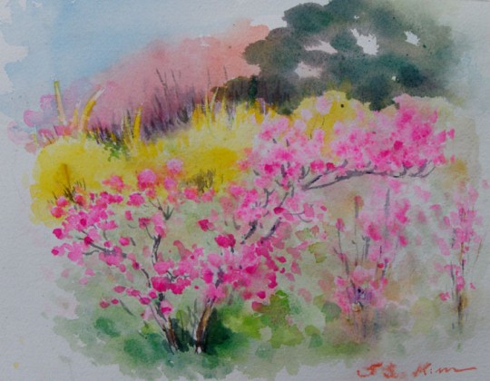 spring 봄이 오면 약산에 진달래 노란 산수유마을 하얀 꽃이 만발한 배 나무 과수원 내일은 복사꽃 그리로 가는 사생일 입니다. 그림이라도 꽃향기를 들이고 싶습니다.