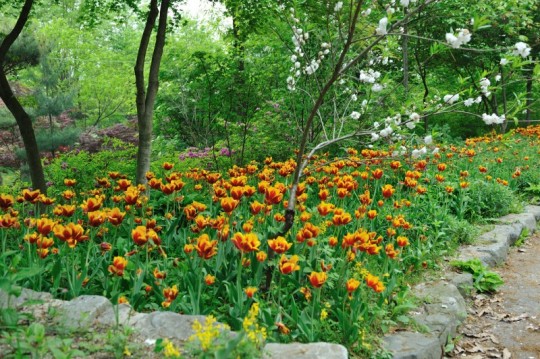 정말 예쁩니다. 오늘 날씨가 마치 여기 핀 꽃들 같습니다.