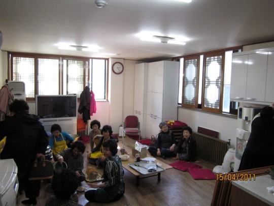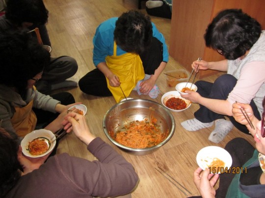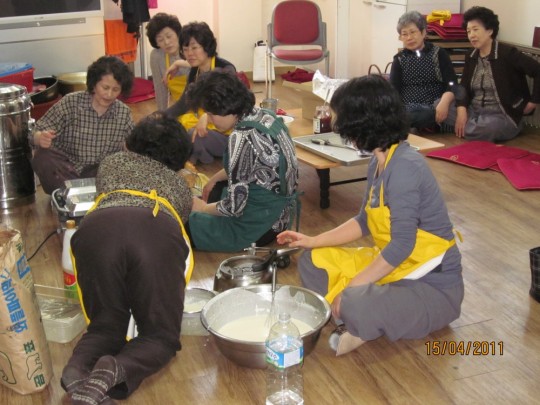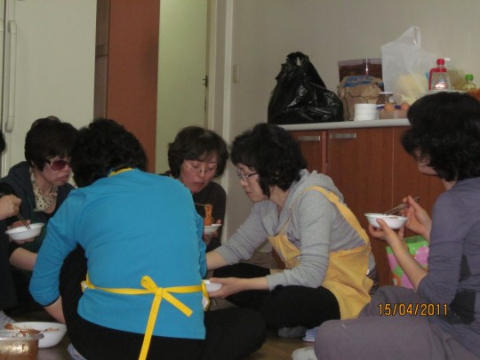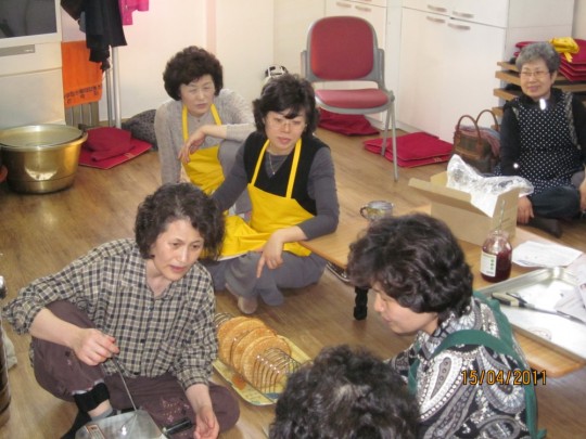 다음날 있을 바자회를 맞아, 음식을 준비하시는 봉공회분들