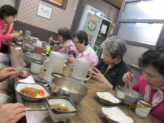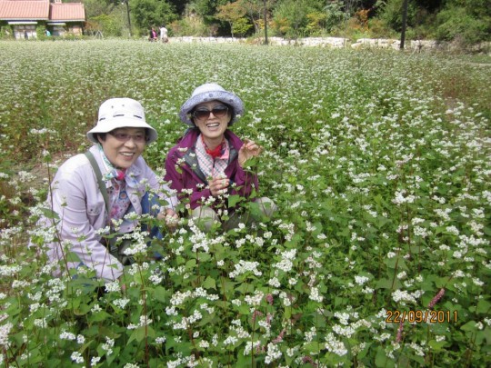 이날 점심에 전타원 양영전님께서 모밀정식(세싹육회.새싹묵침. 메밀전. 메일국수.명이나물. 돈드래장아지. 감자김치)를 사셔서 맛있었고행복했지요 미가원 사장이 남자같이시원시원하고 원불교의후원자 랍니다.
