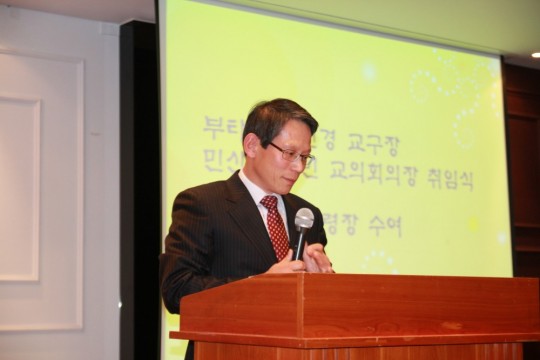 교구교의회의장으로 새롭게 선출된 민산 조제민 교도회장의 취임사가 있었습니다.