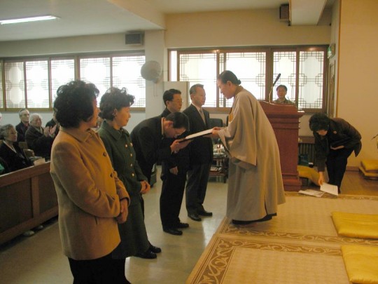 재가출가 교역자 이임 취임식이 원기 93년 1월6일 일요일 10시 대각전에서 모든 교도가 참석한 가운데 열렸다.
