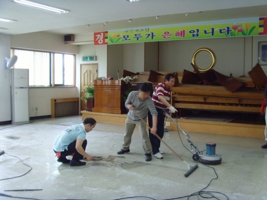 4월 19일 예회후 대각개교절 준비하는 대청소가 있었습니다.교도님들의 정성으로 교당과 교당 주변이 말끔해졌습니다.