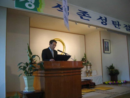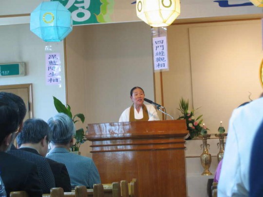 조재민 교도회장의 봉축사에 이어 지타원 정명중 교무님 은 " 불교에 연원을 두신 뜻" 이라는 제목으로 설법을 하셨다.
