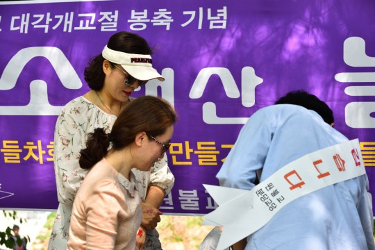 대각개교절 행사의 일환으로 "시민을 위한 원불교 홍보 및 안내"를 원기 102년 4월 30일 법회 후 분당 중앙 공원에서 거행하였습니다.