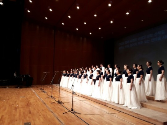 원기 103년 6월 24일 전국 원음 합창제에 걍인교구 합창단이 참여한 사진입니다.
