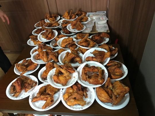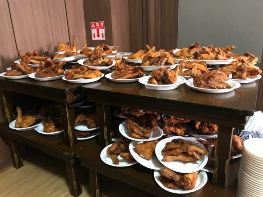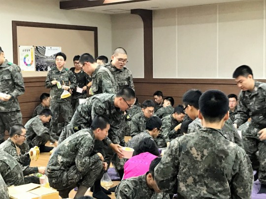 군인들이 가장 좋아하는 치킨과 떡볶이를 준비해서